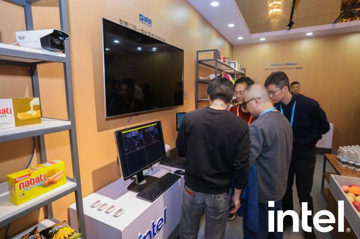 吉方與intel攜手推出門店一體化解決方案。智慧零售門店場景下,打通了收銀、監控、廣告、圖像識別、電子價簽這些設備的數據,實現AI方面的邊緣計算算力,以及門店的物聯網管理。