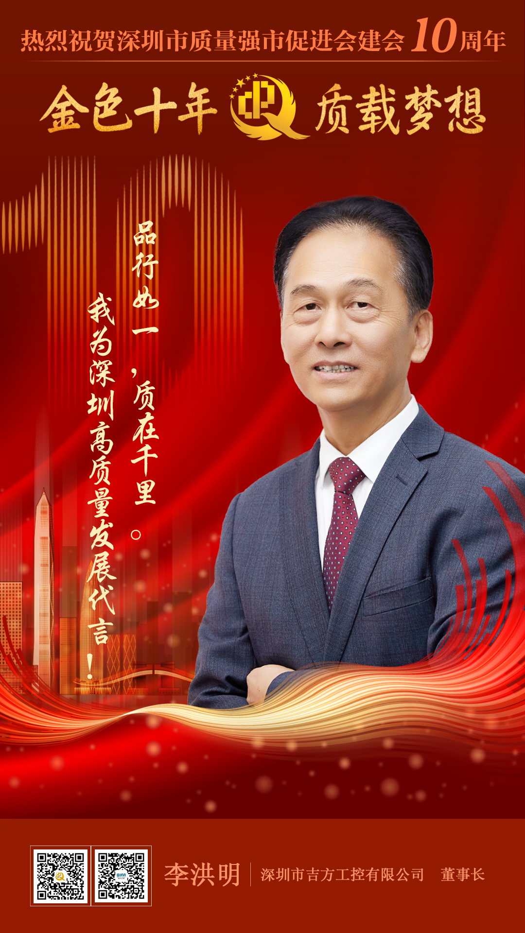 為慶祝深圳市質量強市促進會建會10周年,特舉辦“金色十年,質載夢想”我為深圳高質量發展代言系列活動。深圳市吉方工控有限公司董事長李洪明再次上榜,為深圳市高質量發展代言!