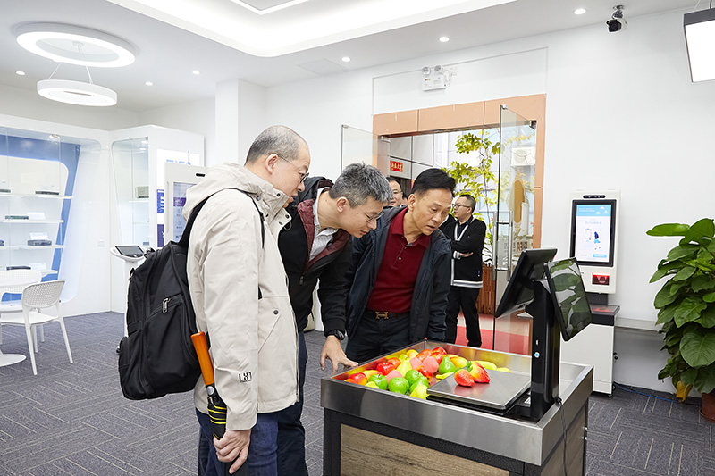 領(lǐng)導(dǎo)們對門店一體化的展示表示肯定。智慧門店一體化POS系統(tǒng)以具有邊緣計算能力的主機(jī)為核心,集成了AI識別攝像頭、電子價簽基站、直播攝像頭、收銀機(jī)監(jiān)控攝像頭、數(shù)字標(biāo)牌、商店監(jiān)控攝像頭等外圍組件的軟、硬件接口,實現(xiàn)智慧商店的人工和自助收款、客戶互動、多點獲客、貨架管理、客流分析、防損、購物引導(dǎo)等功能,同時POS主機(jī)也是門店物聯(lián)網(wǎng)系統(tǒng)的智能網(wǎng)關(guān)。