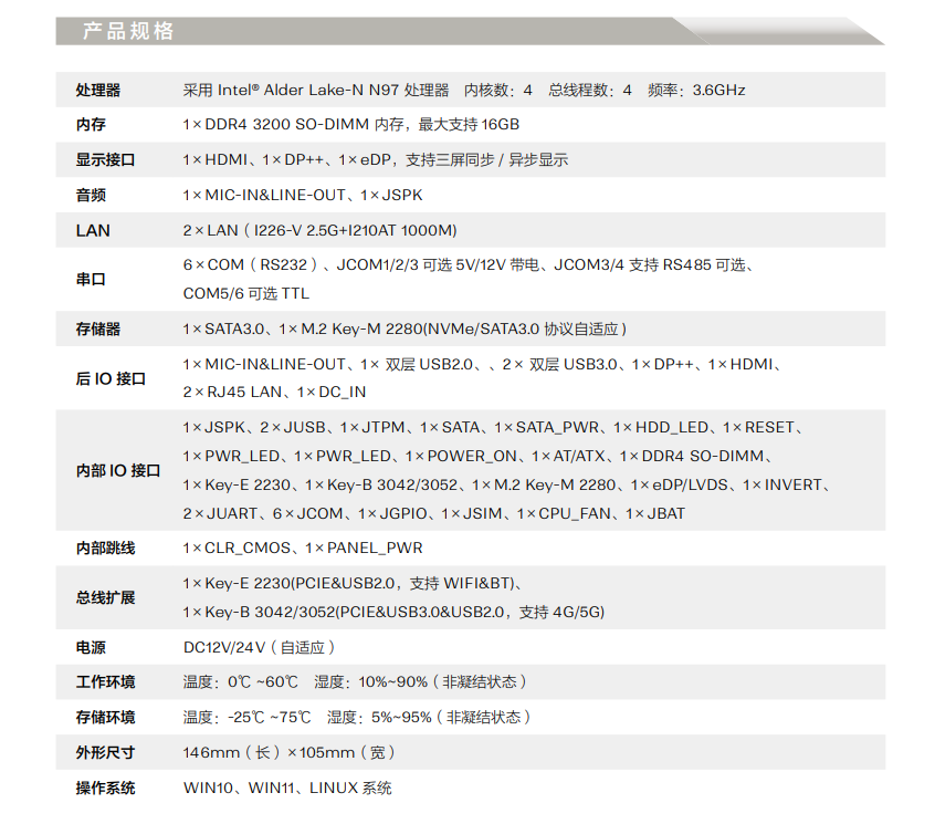 2×LAN(I226-V+I210AT)、1×Key-E 2230、1×Key-B 3042/3052