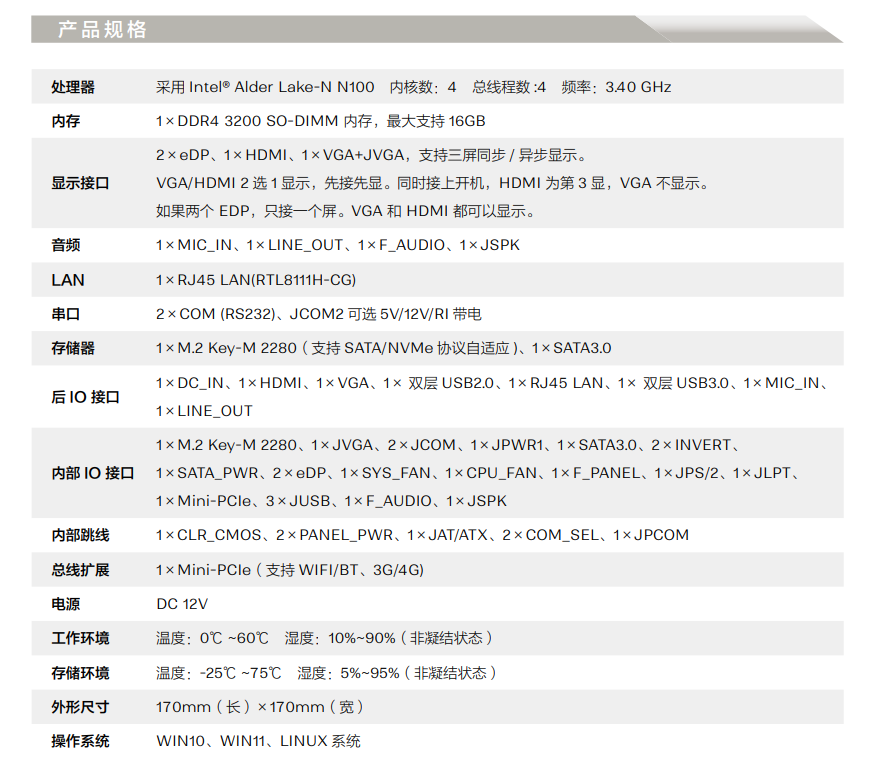 1×RJ45 LAN(RTL8111H-CG)、 1×Mini-PCIe
