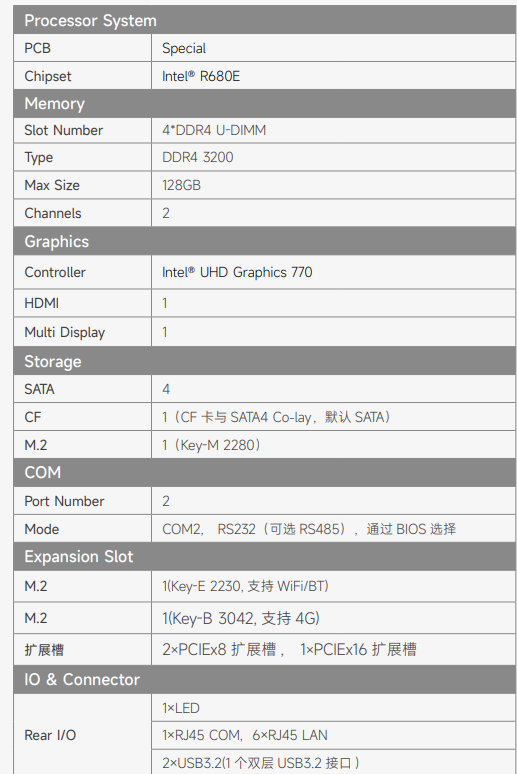 ? 采用 Intel? R680E 芯片組,支持 Intel?LAG1700 架構Raptor lake-S 第 13 代i9、i7、i5、i3 酷睿處理器